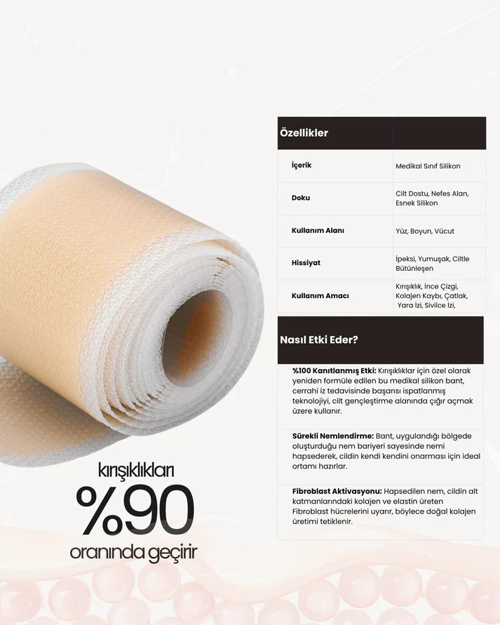 Kolajen Bant, cildi germek yerine cildin kendi onarım sürecini destekleyen özel bir mikro-ortam oluşturur. Nem ve kolajeni ciltte hapsederek yenilenmeyi hızlandırır.