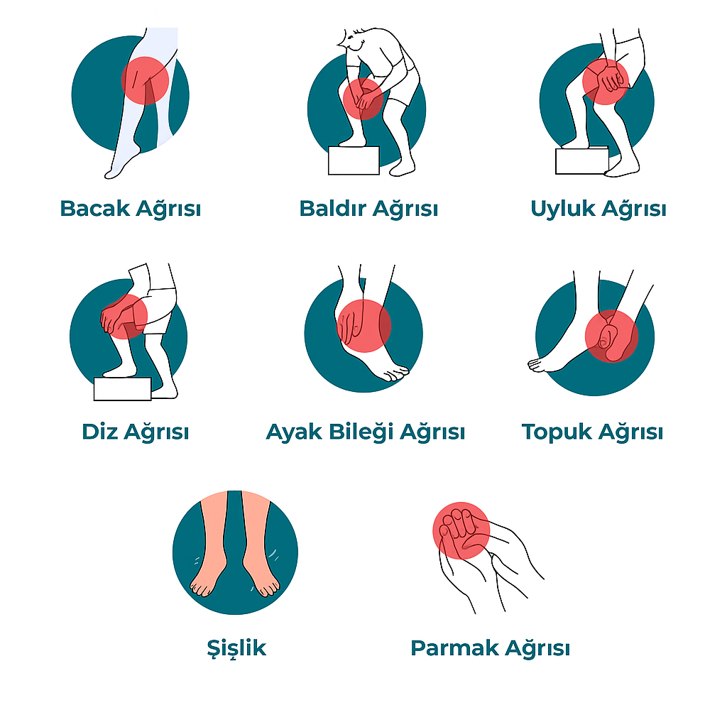 Bacaklardaki şişlik, ağrı ve damar belirginliğini azaltmaya yardımcı olur.